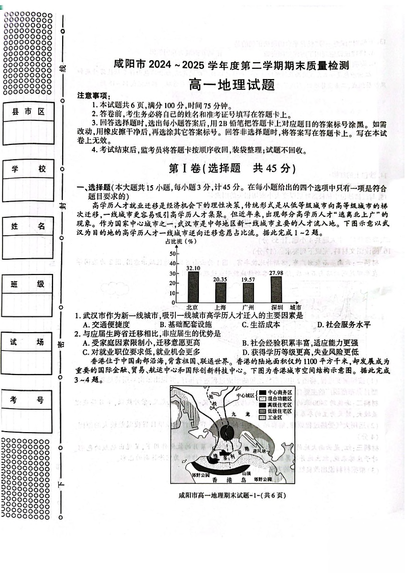 高一地理+答案--陕西省咸阳市2024-2025学年高一下学期期末