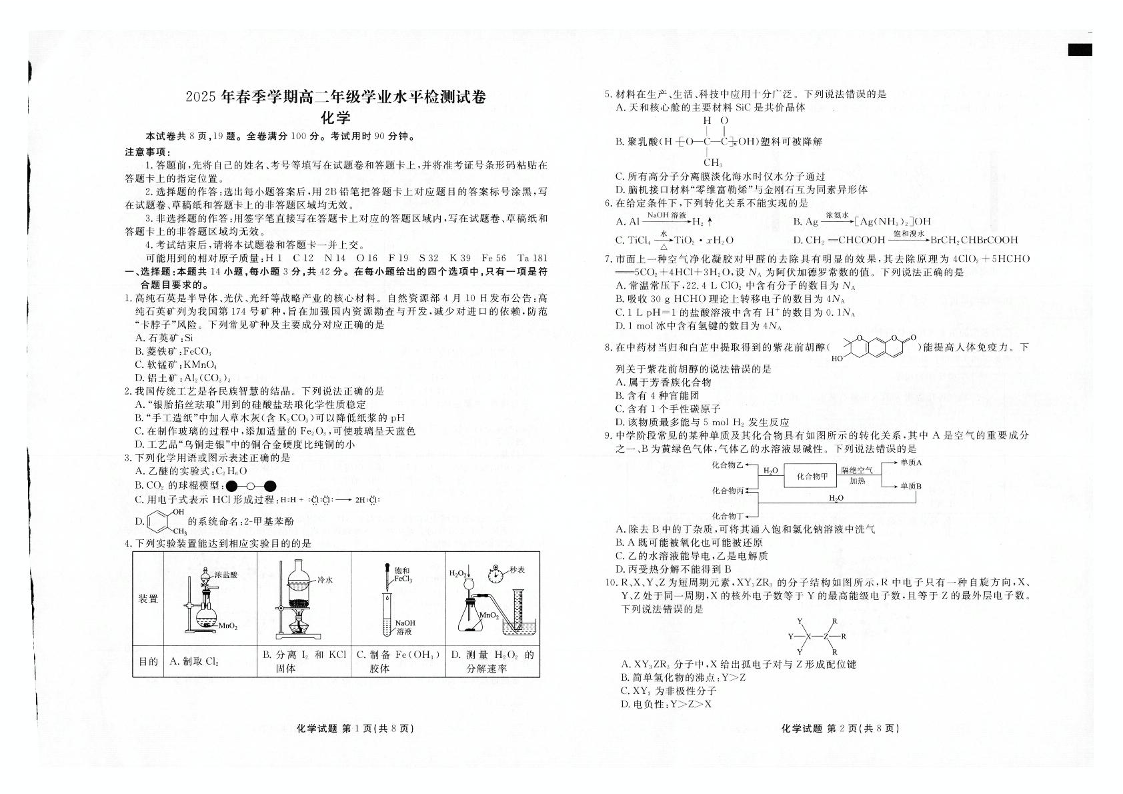高二化学+答案--云南省曲靖市宣威市部分学校2024-2025学年高二下学期期末考试