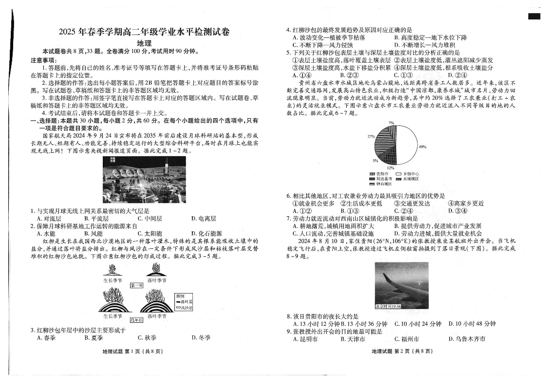 高二地理+答案--云南省曲靖市宣威市部分学校2024-2025学年高二下学期期末考试