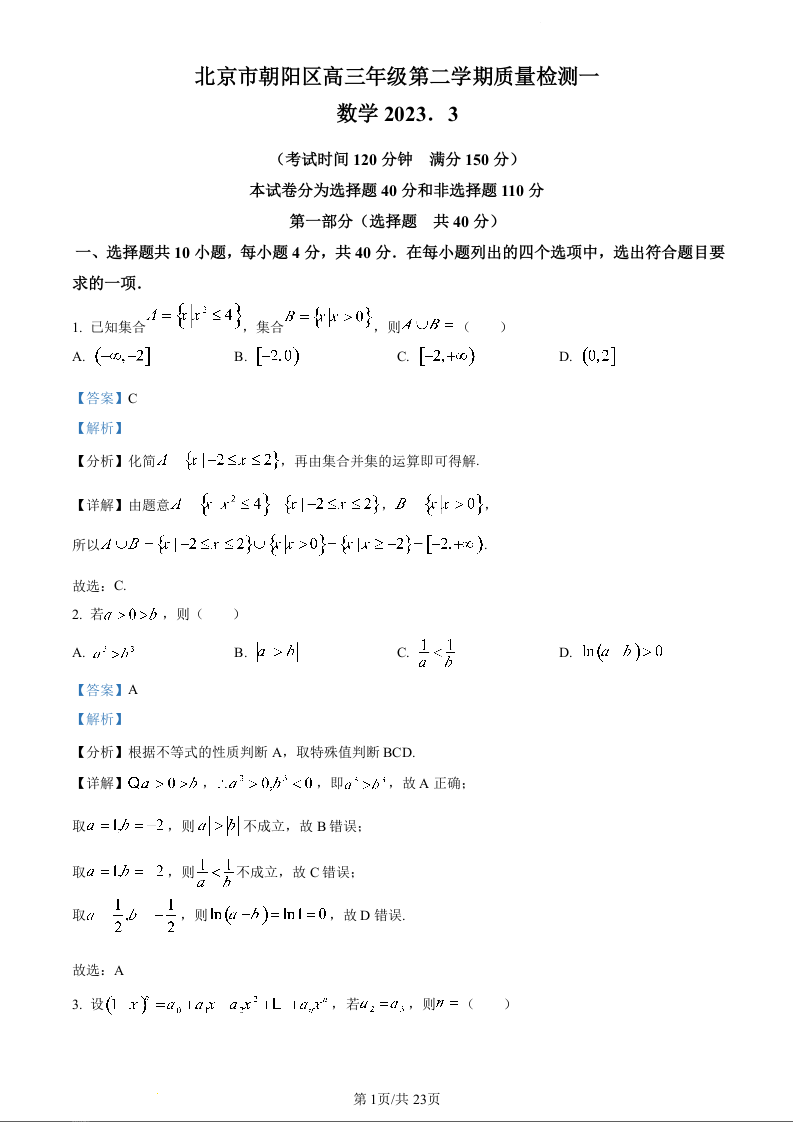 高三数学答案--北京市朝阳区2023届高三下学期一模