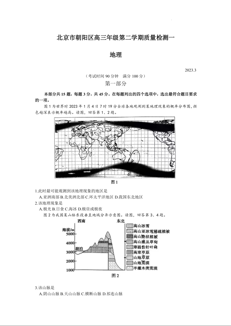 高三地理--北京市朝阳区2023届高三下学期一模
