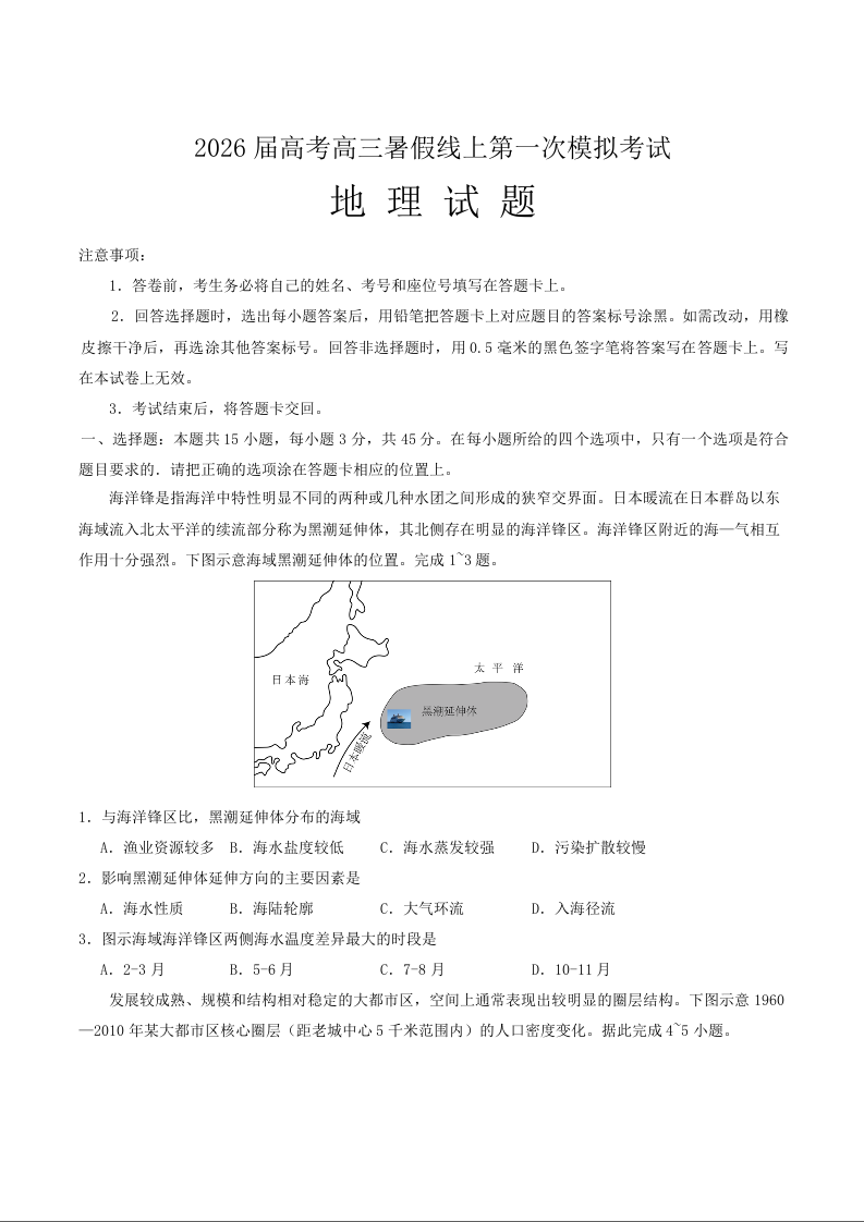 高三地理+答案--山东省启思大联考2026届高三上学期暑假第一次模拟考试(开学)