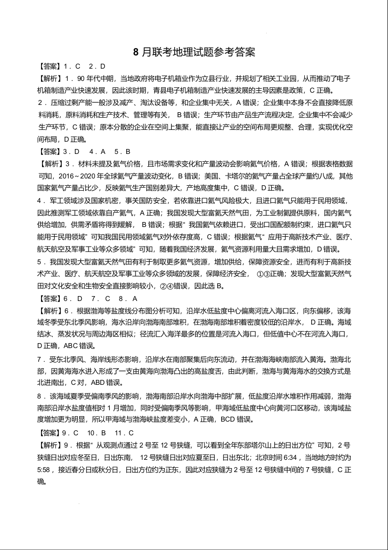 高三地理答案--广西邕横教育名校联盟2026届高三上学期8月联合调研测试