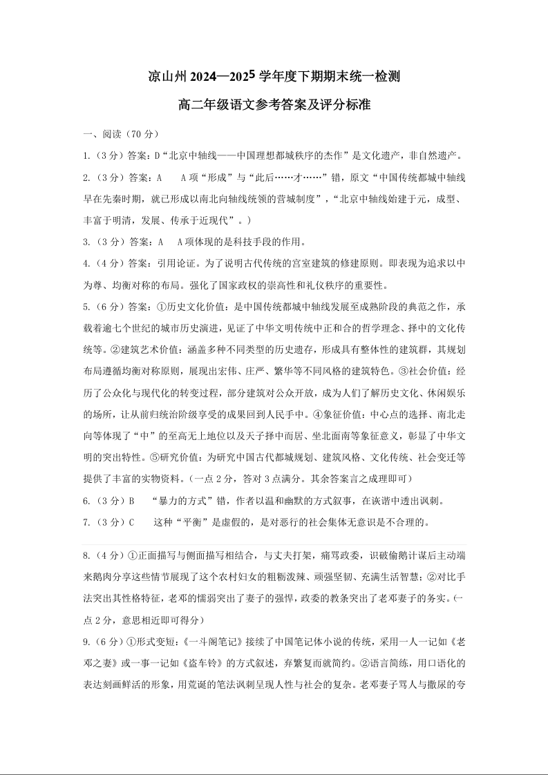 高二语文答案--四川省凉山州2024-2025学年高二下学期期末考试