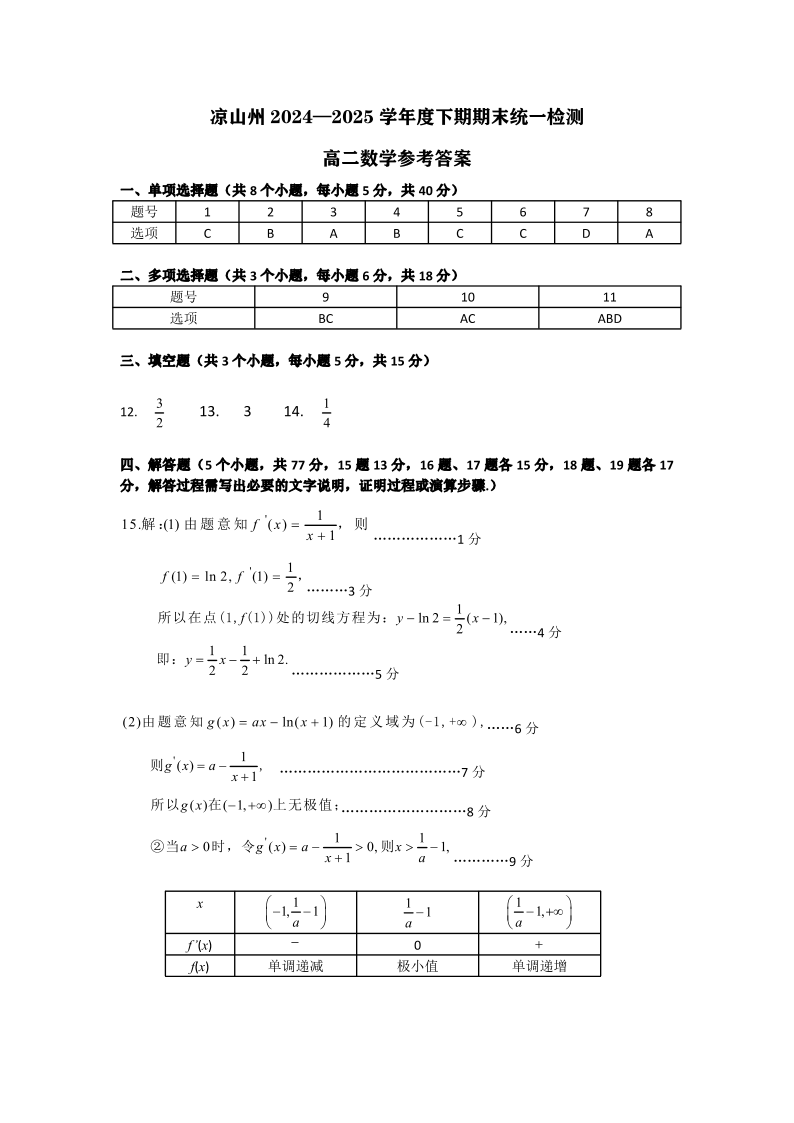 高二数学答案--四川省凉山州2024-2025学年高二下学期期末考试