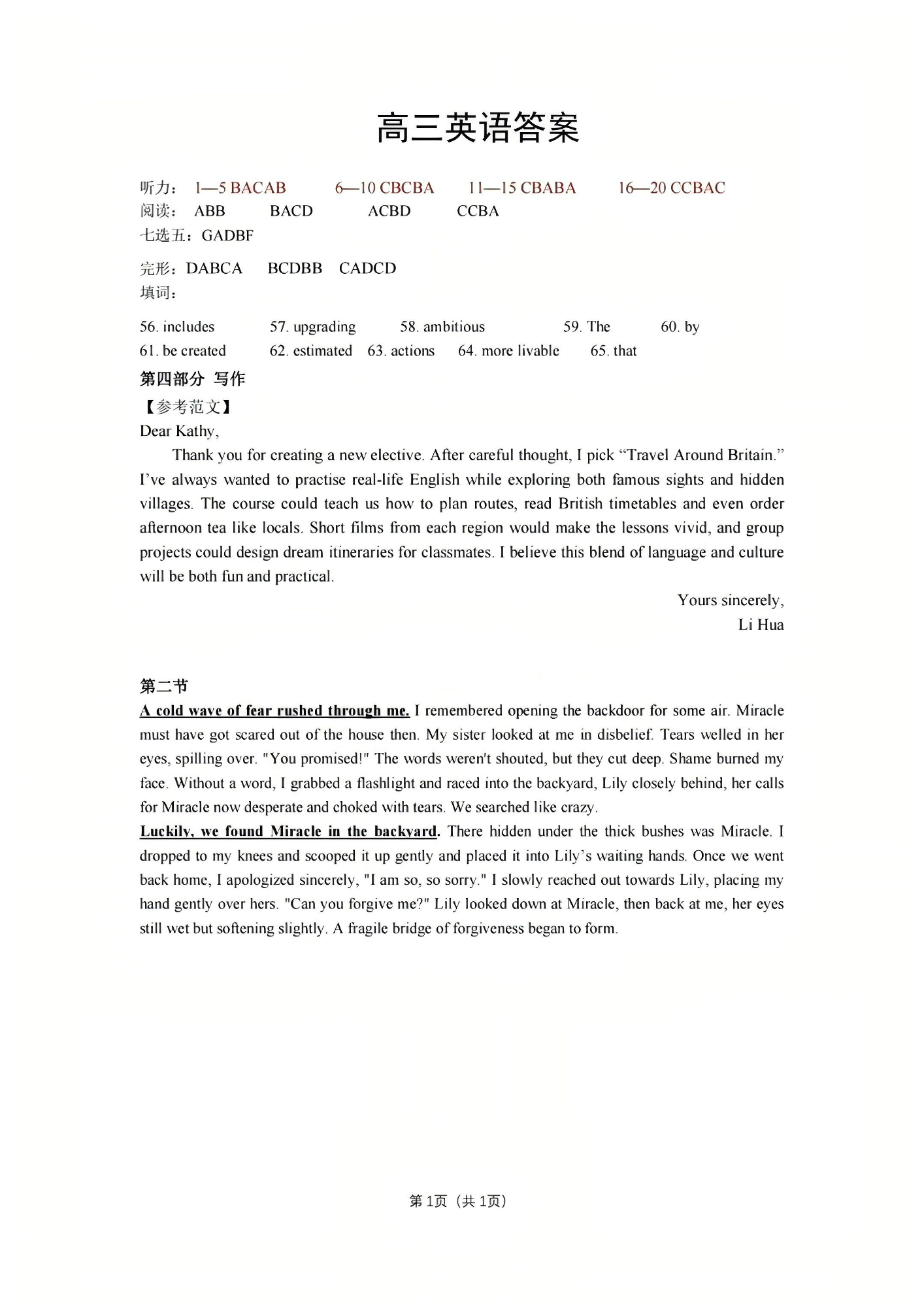 高三英语答案--湖北省腾云联盟2026届高三上学期开学考试