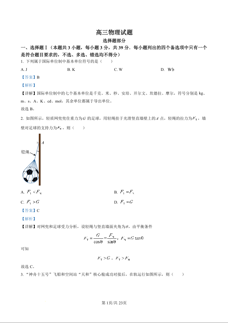 高三物理(解析版)--浙江省2023年1月普通高校招生选考
