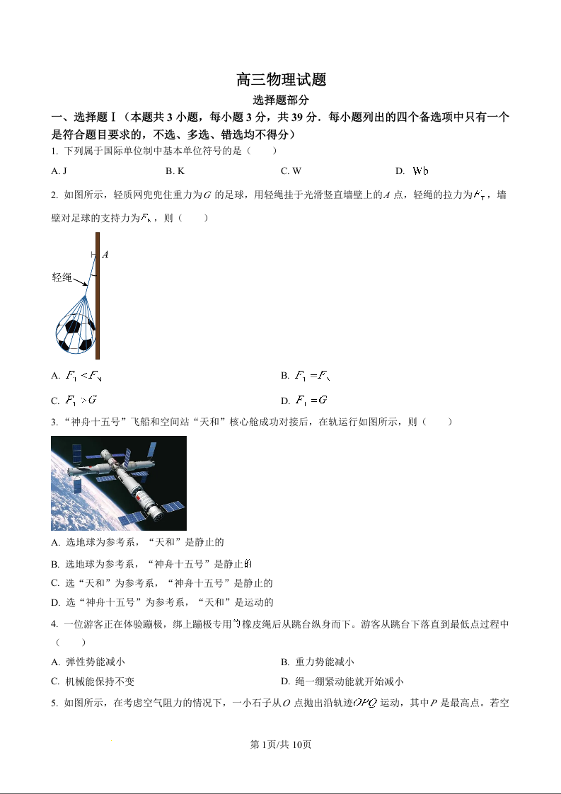 高三物理(原卷版)--浙江省2023年1月普通高校招生选考