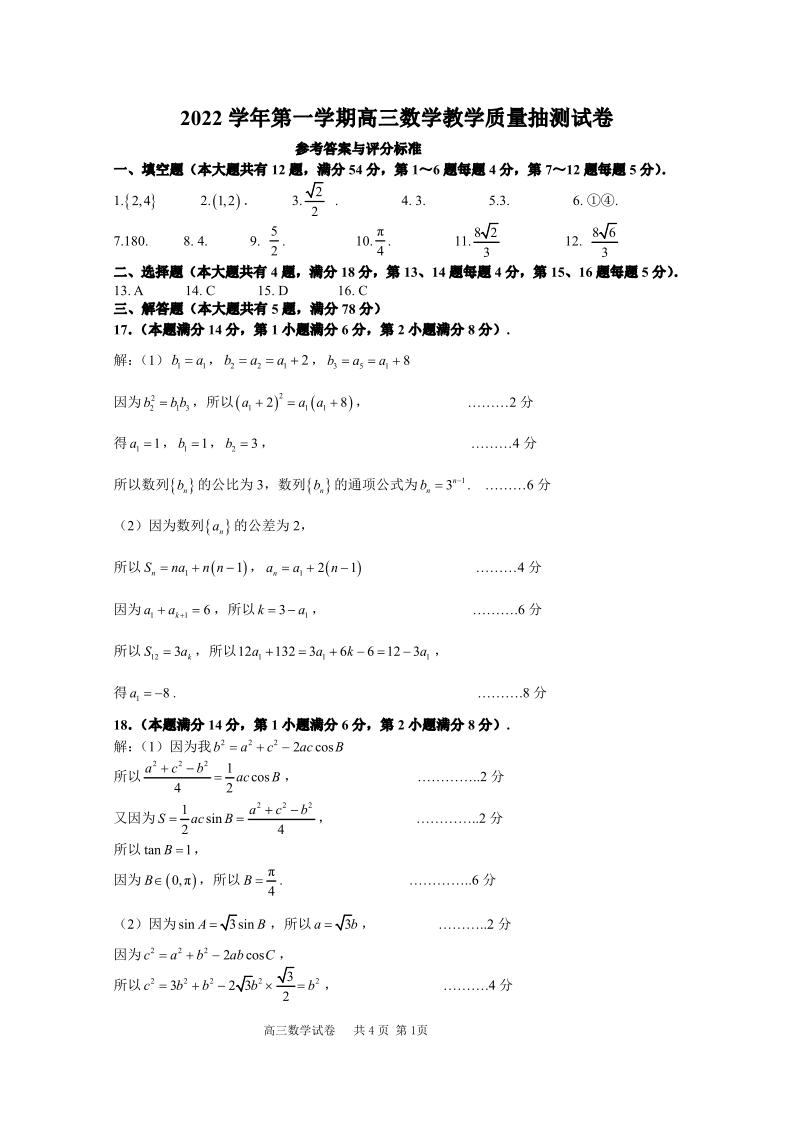 高三数学答案--上海市长宁区2023届高三上学期教学质量调研(一模)