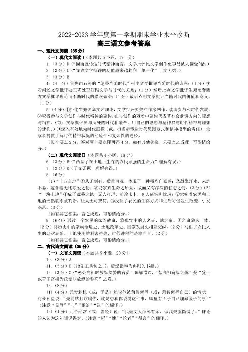 高三语文答案--山东烟台高三2022-2023学年度第一学期期末学业水平诊断
