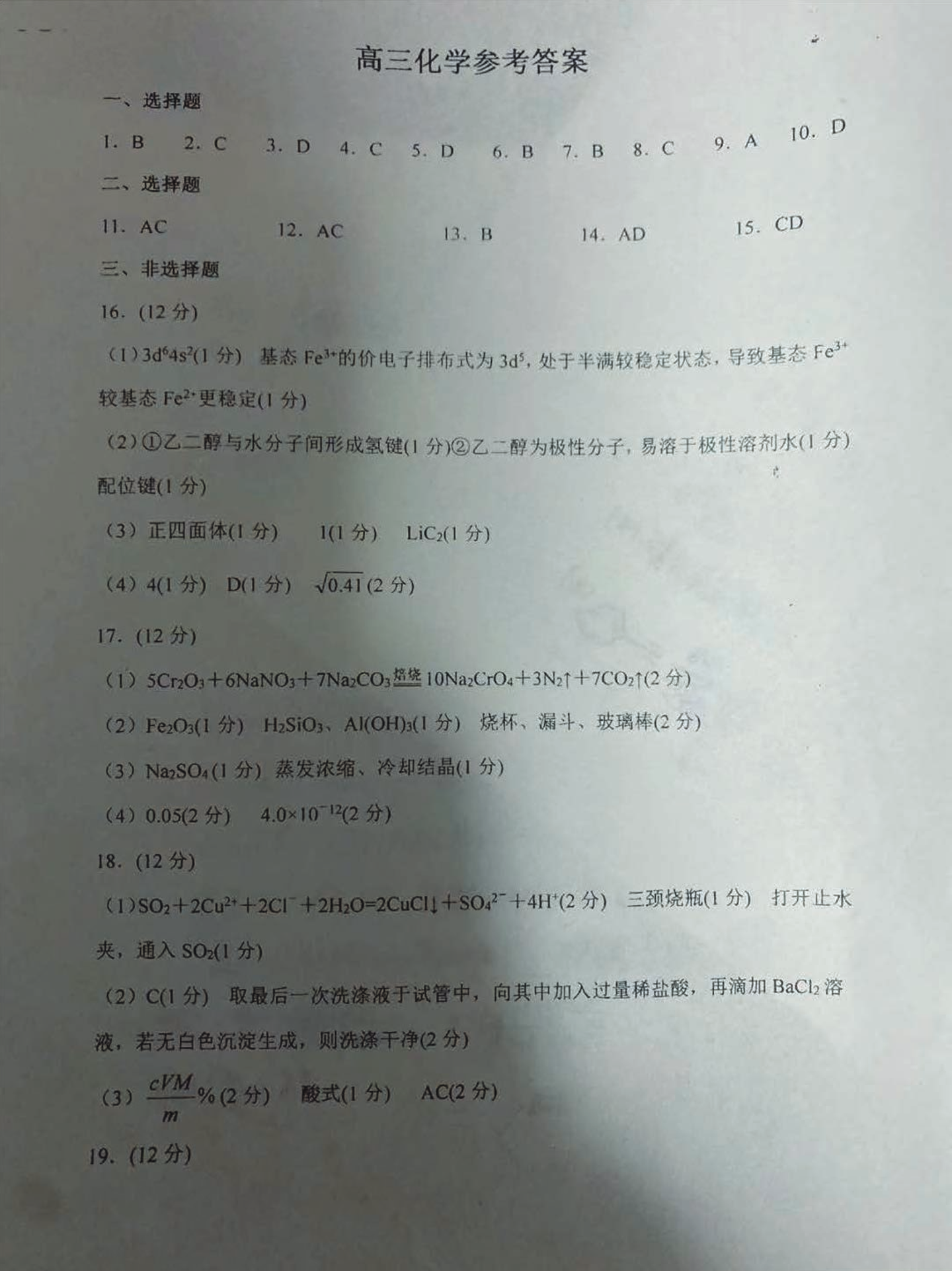 高三化学答案--山东烟台高三2022-2023学年度第一学期期末学业水平诊断
