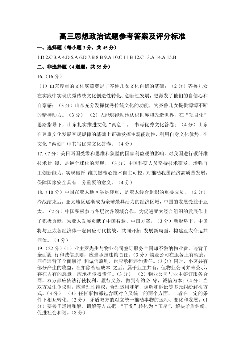 高三政治答案--山东烟台高三2022-2023学年度第一学期期末学业水平诊断
