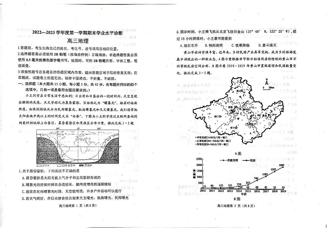 高三地理--山东烟台高三2022-2023学年度第一学期期末学业水平诊断