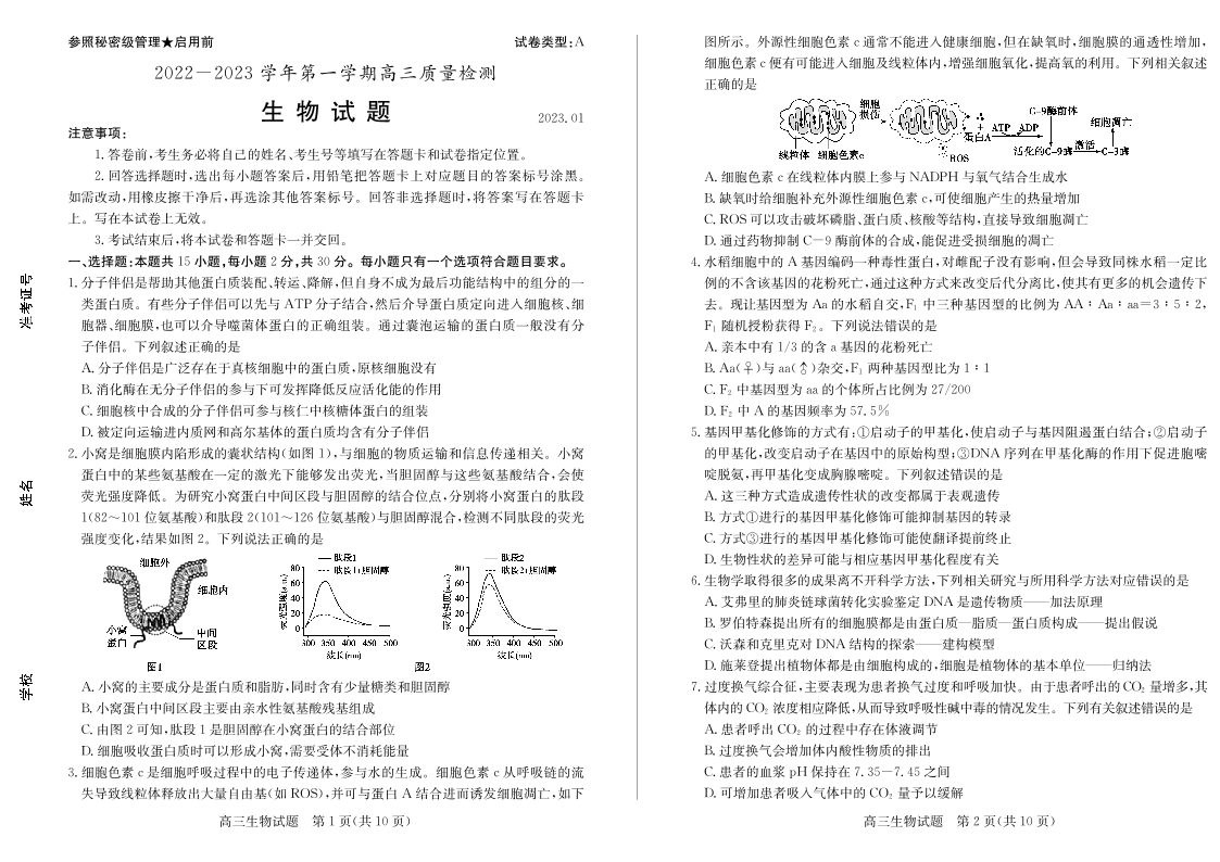 高三生物--山东省枣庄2022-2023学年第一学期高三质量检测(一调)