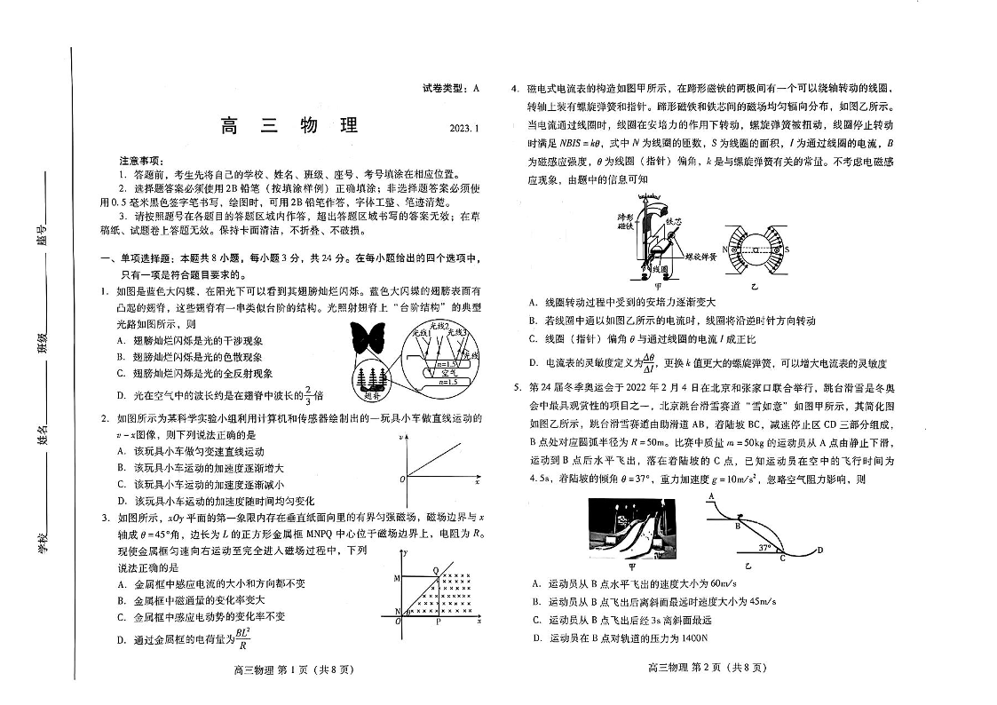高三物理--山东省潍坊2023届高三期末联考
