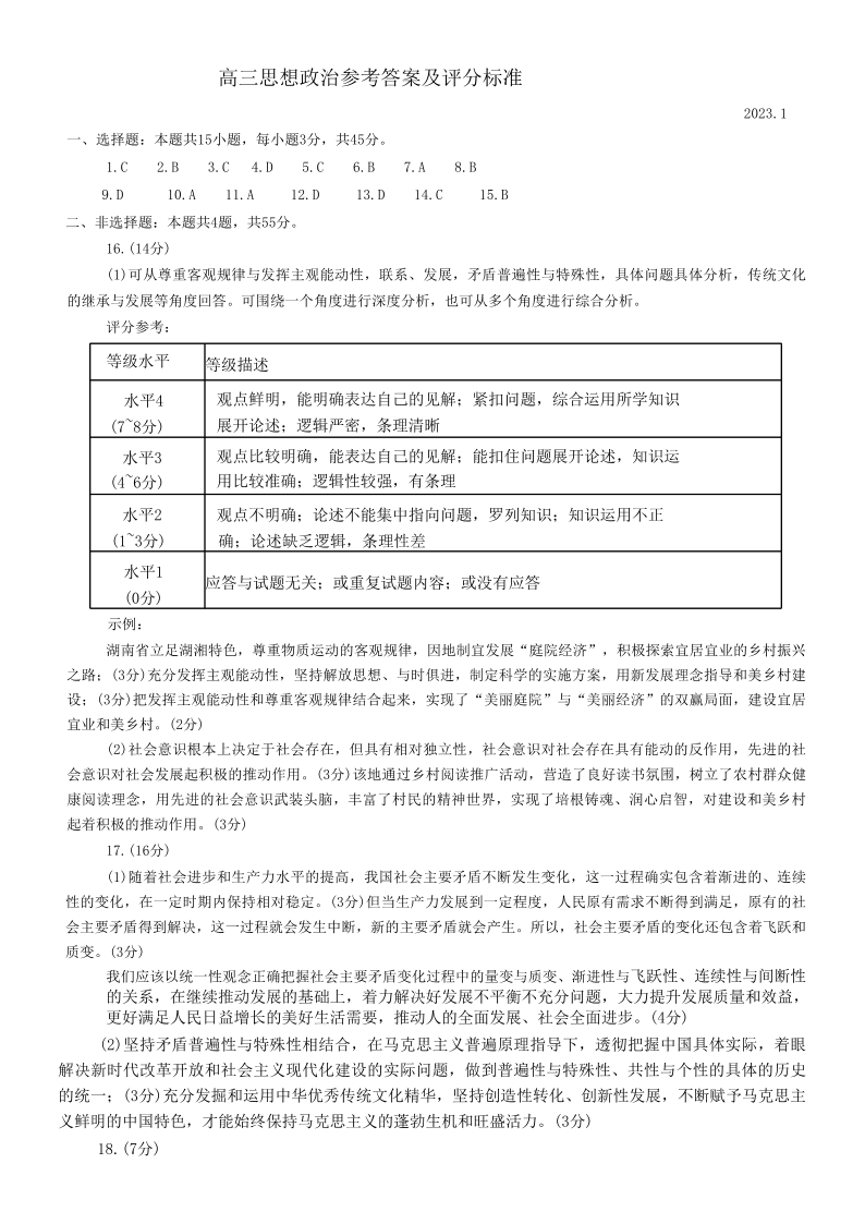 高三政治答案--山东省潍坊2023届高三期末联考