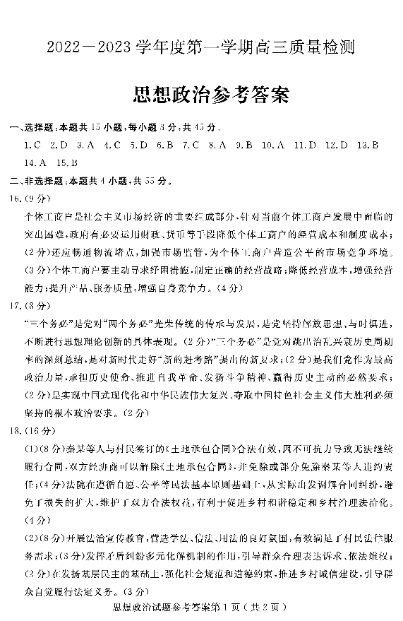 高三政治答案--山东省济宁市2022-2023学年高三上学期期末