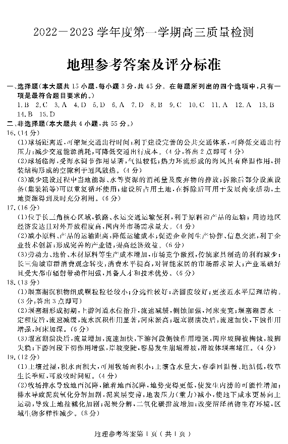 高三地理答案--山东省济宁市2022-2023学年高三上学期期末