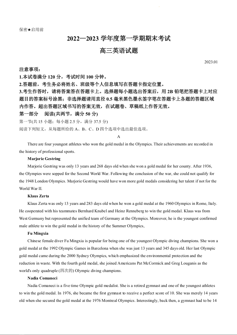 高三英语+答案--山东省菏泽市2023届高三上学期期末考试