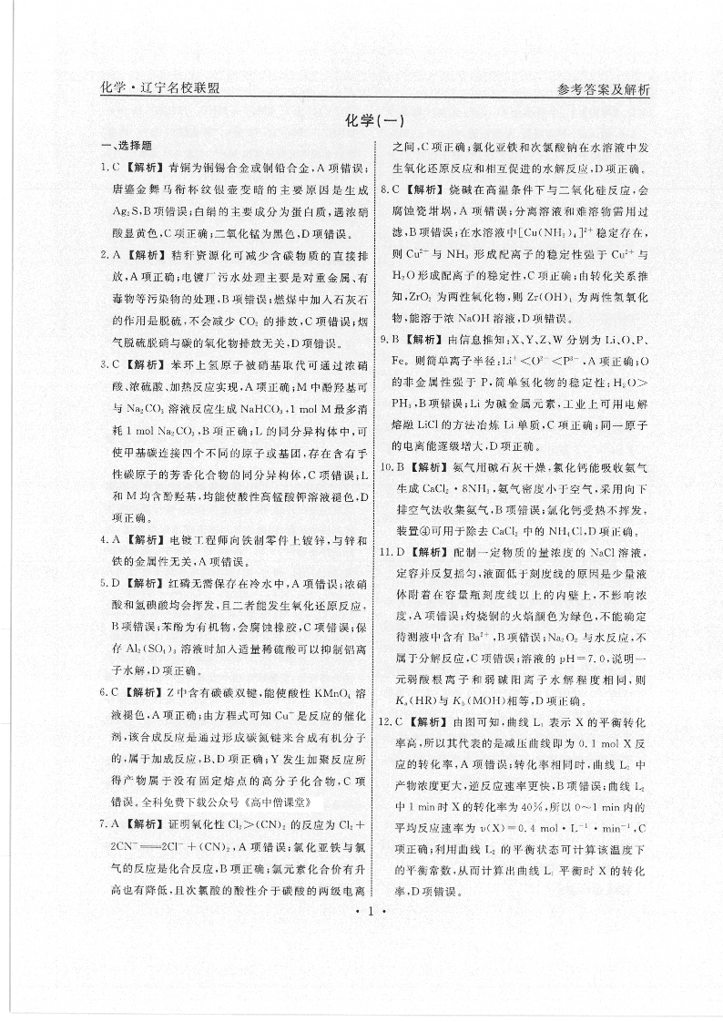 高三化学答案--辽宁省名校联盟2023届高考模拟调研卷(一)