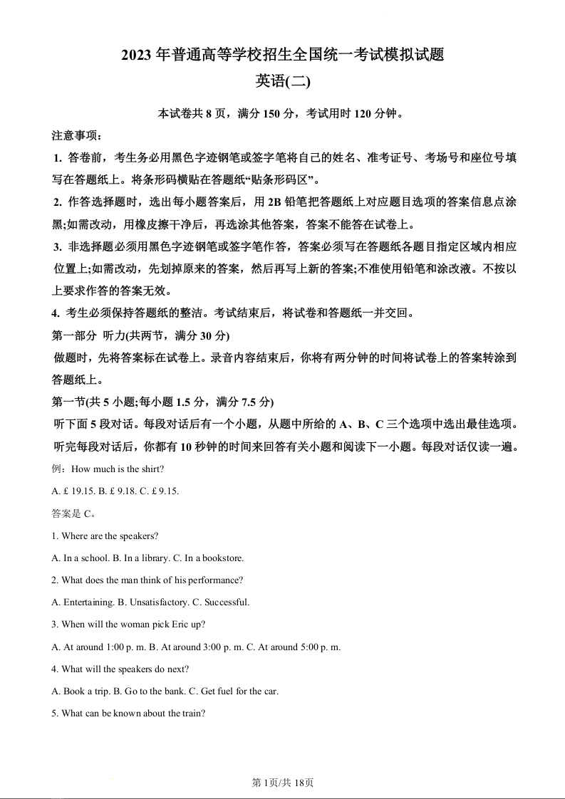 高三英语+答案--辽宁省名校联盟2023届高考模拟调研卷(二)