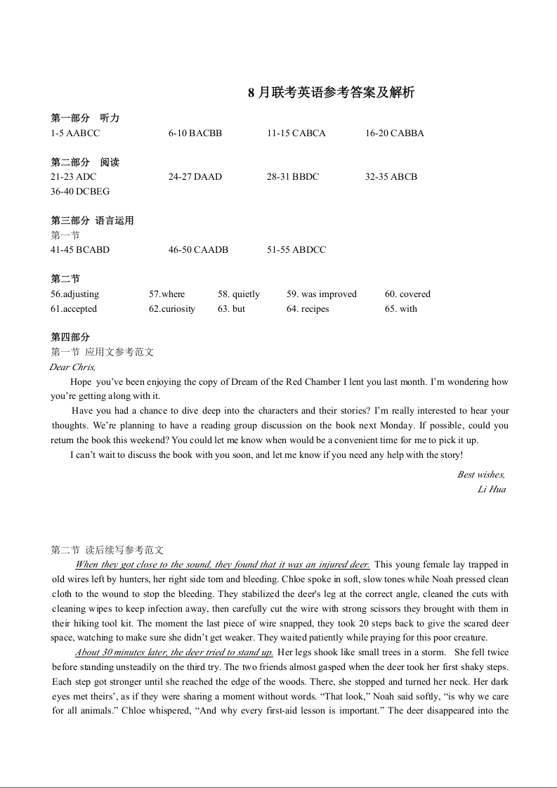 高三英语答案--广西邕衡教育·名校联盟2026届新高考秋季学期8月适应性联合测试