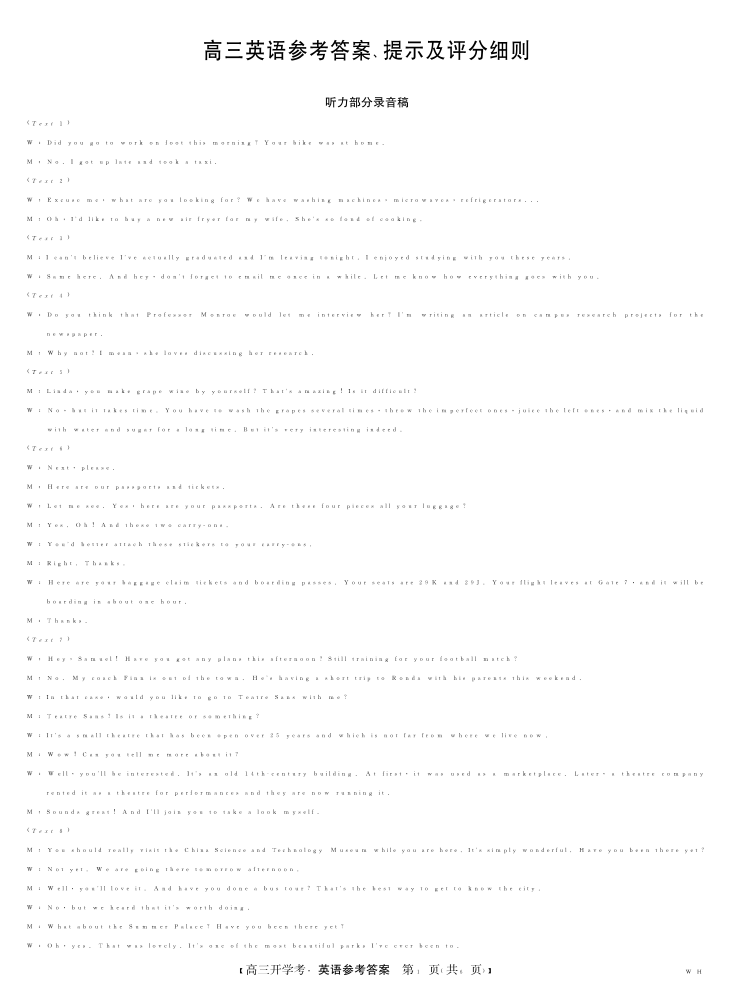 高三英语答案--湖北省九师联盟2026届高三上学期8月开学考试