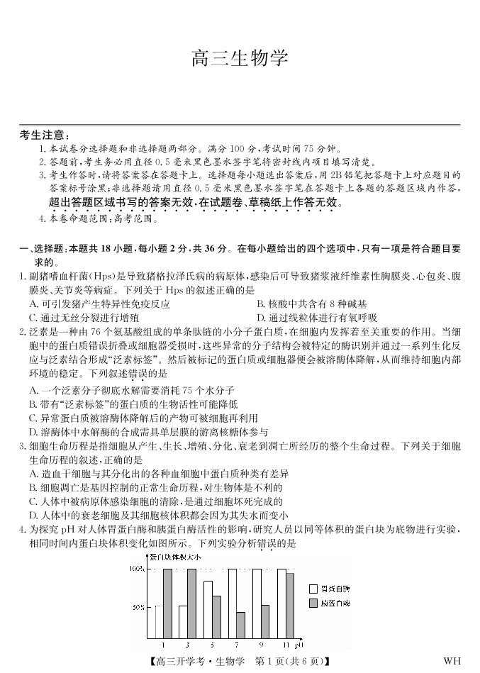 高三生物--湖北省九师联盟2026届高三上学期8月开学考试
