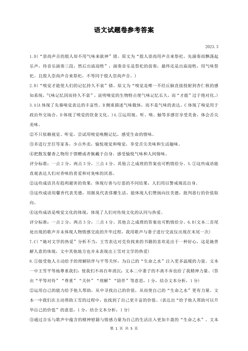高三语文答案--浙江省温州市普通高中2023届高三第二次适应性考试
