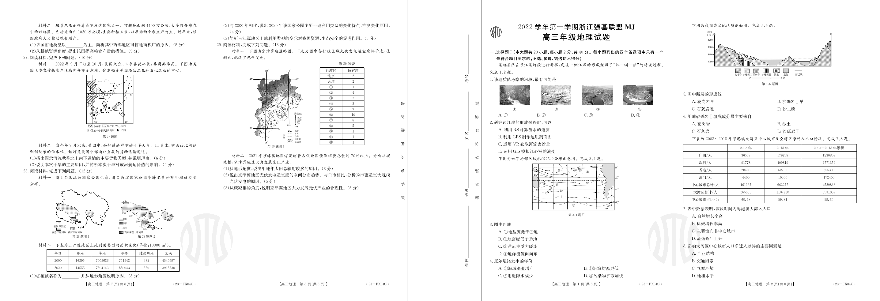 高三地理--浙江省强基联盟2023届高三上学期选考仿真密卷