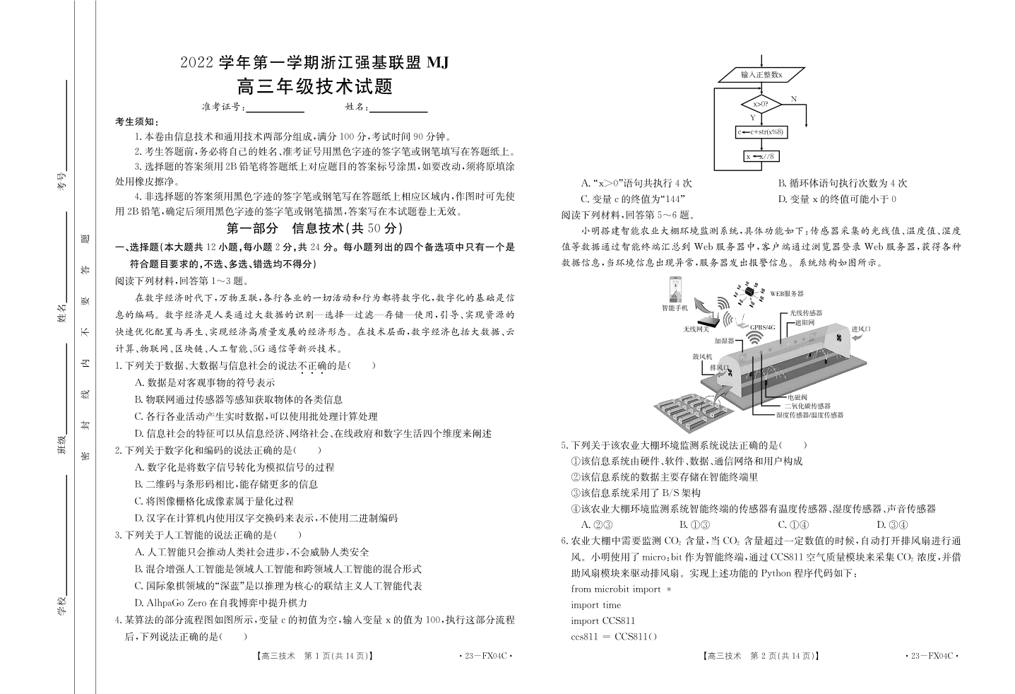 高三技术--浙江省强基联盟2023届高三上学期选考仿真密卷