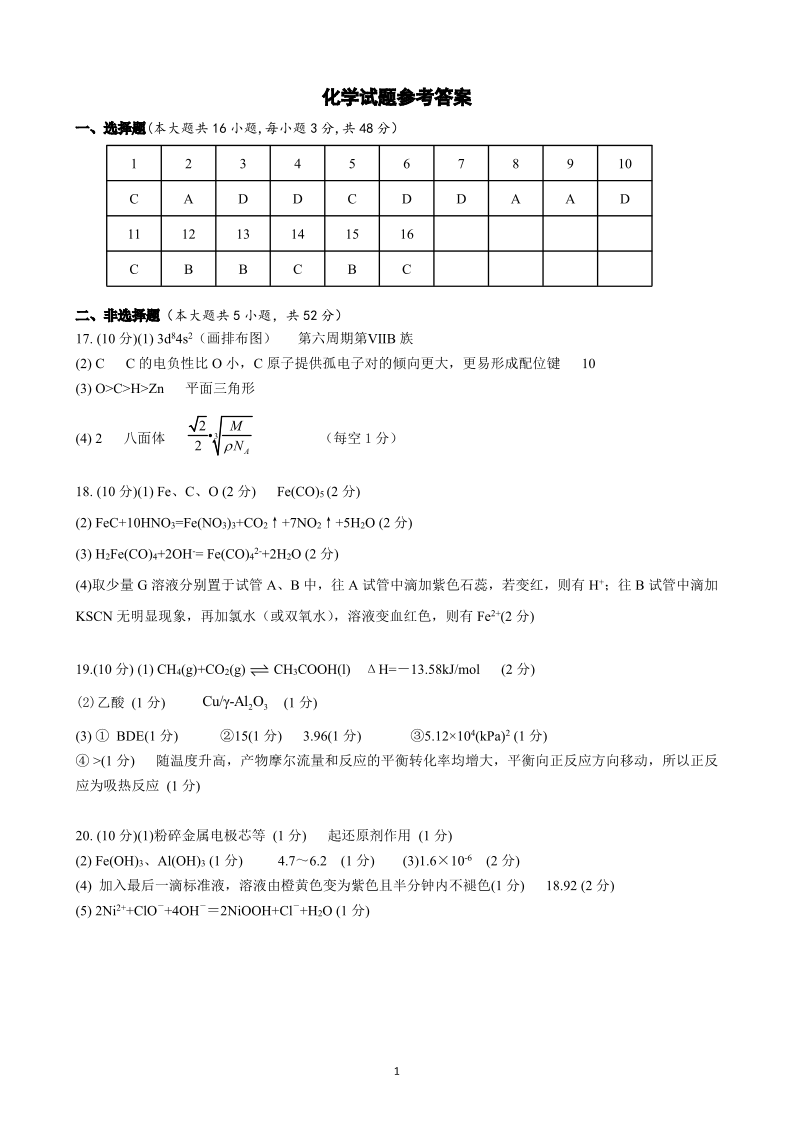 高三化学答案--浙江省杭州第二中学2023高三下学期3月月考