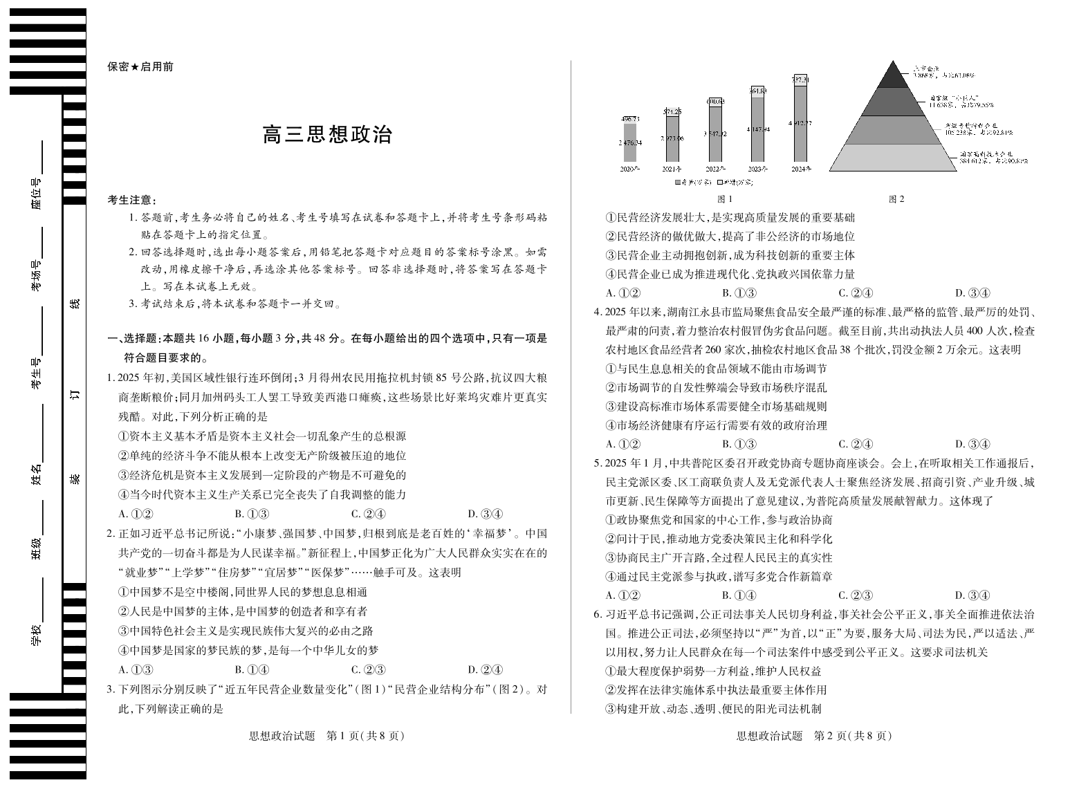 高三政治--湖南省天一大联考2026届高三上学期阶段性检测(一)