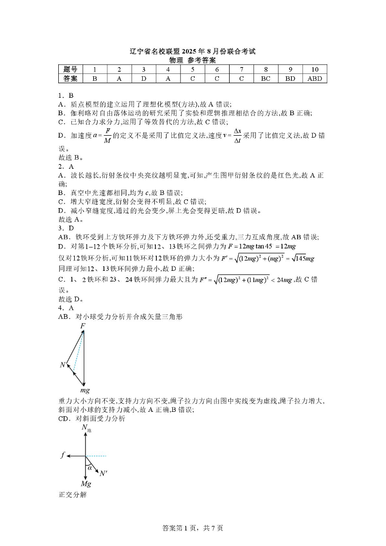 高三物理答案--辽宁省名校联盟2025-2026学年高三上学期8月份联合考试