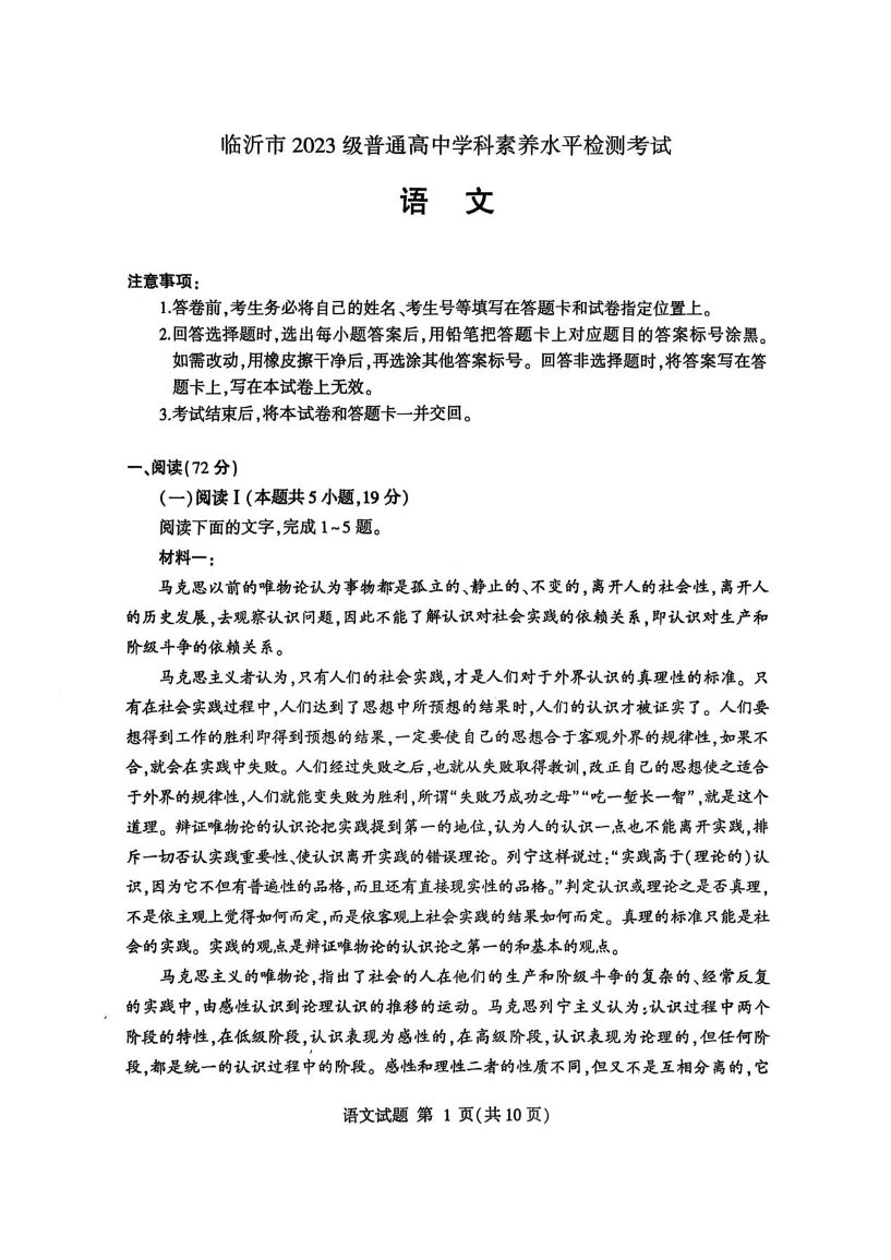 高二语文+答案--山东省临沂市2024-2025学年高二下学期期末素养水平检测考试
