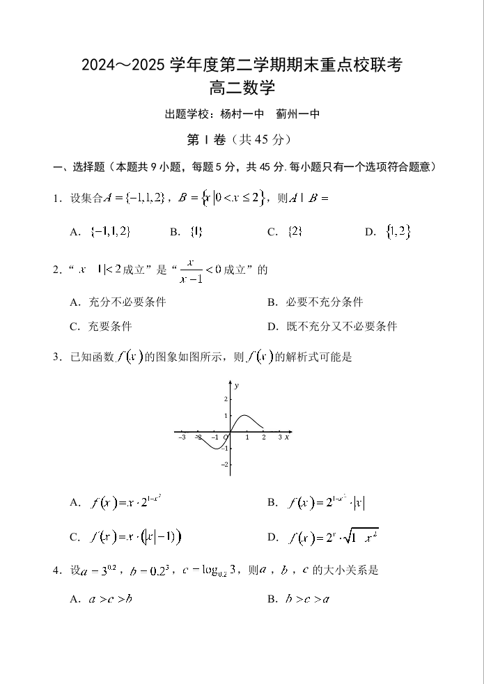 高二数学+答案--天津市五区县重点校2024-2025学年高二下学期7月期末联考试题
