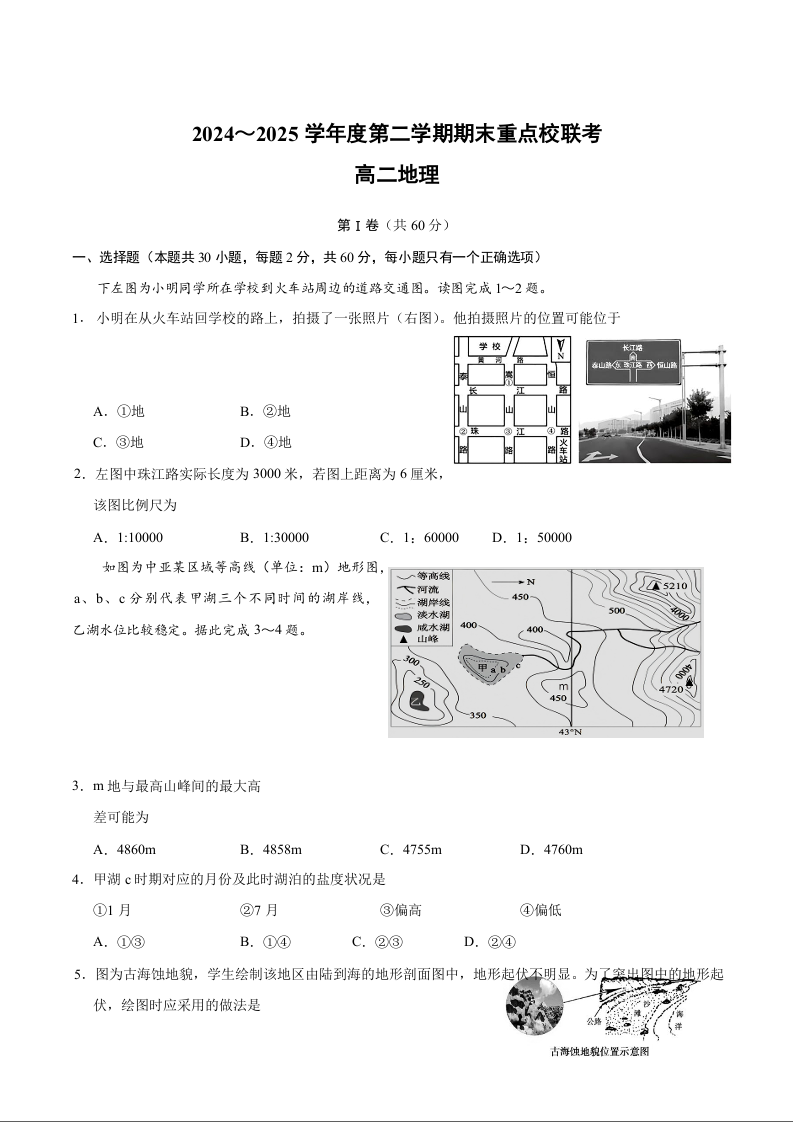 高二地理+答案--天津市五区县重点校2024-2025学年高二下学期7月期末联考试题