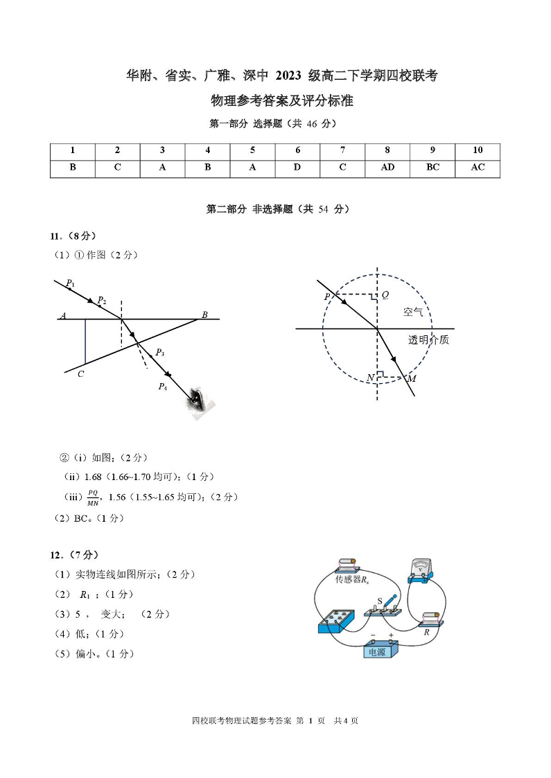 高二物理答案--广东省华附、省实、广雅、深中四校2024-2025学年高二下学期期末联考