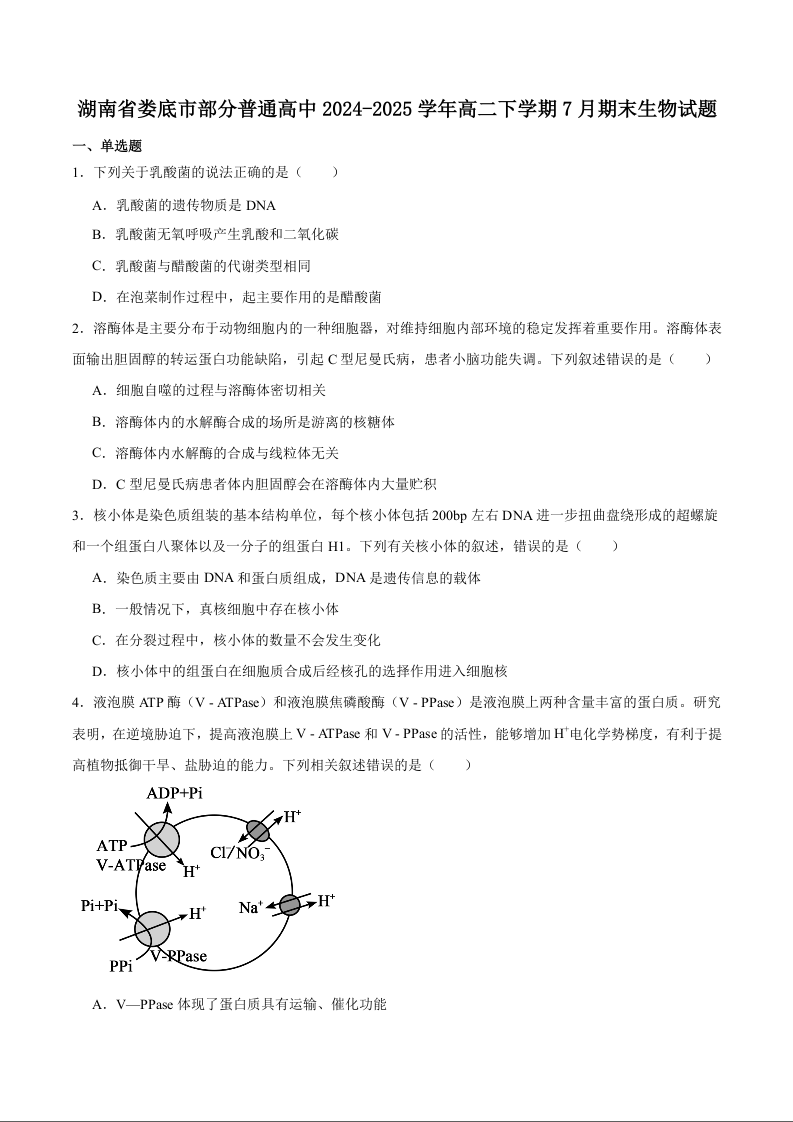 高二生物+答案--湖南省娄底市部分普通高中2024-2025学年高二下学期期末考试