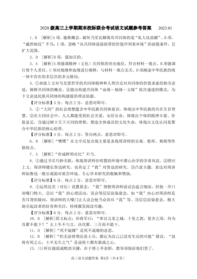 高三语文答案--山东日照2023届高三上学期期末校际联合考试