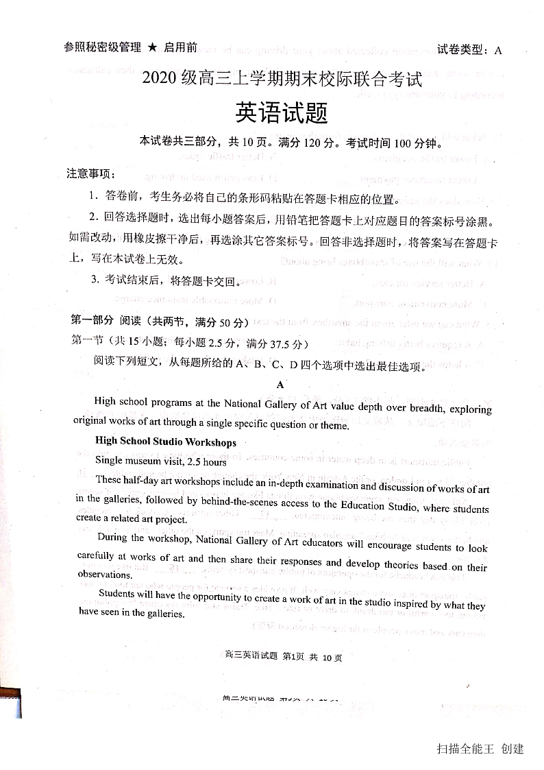 高三英语--山东日照2023届高三上学期期末校际联合考试