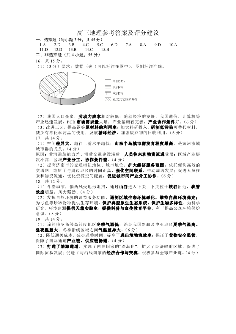 高三地理答案--山东日照2023届高三上学期期末校际联合考试