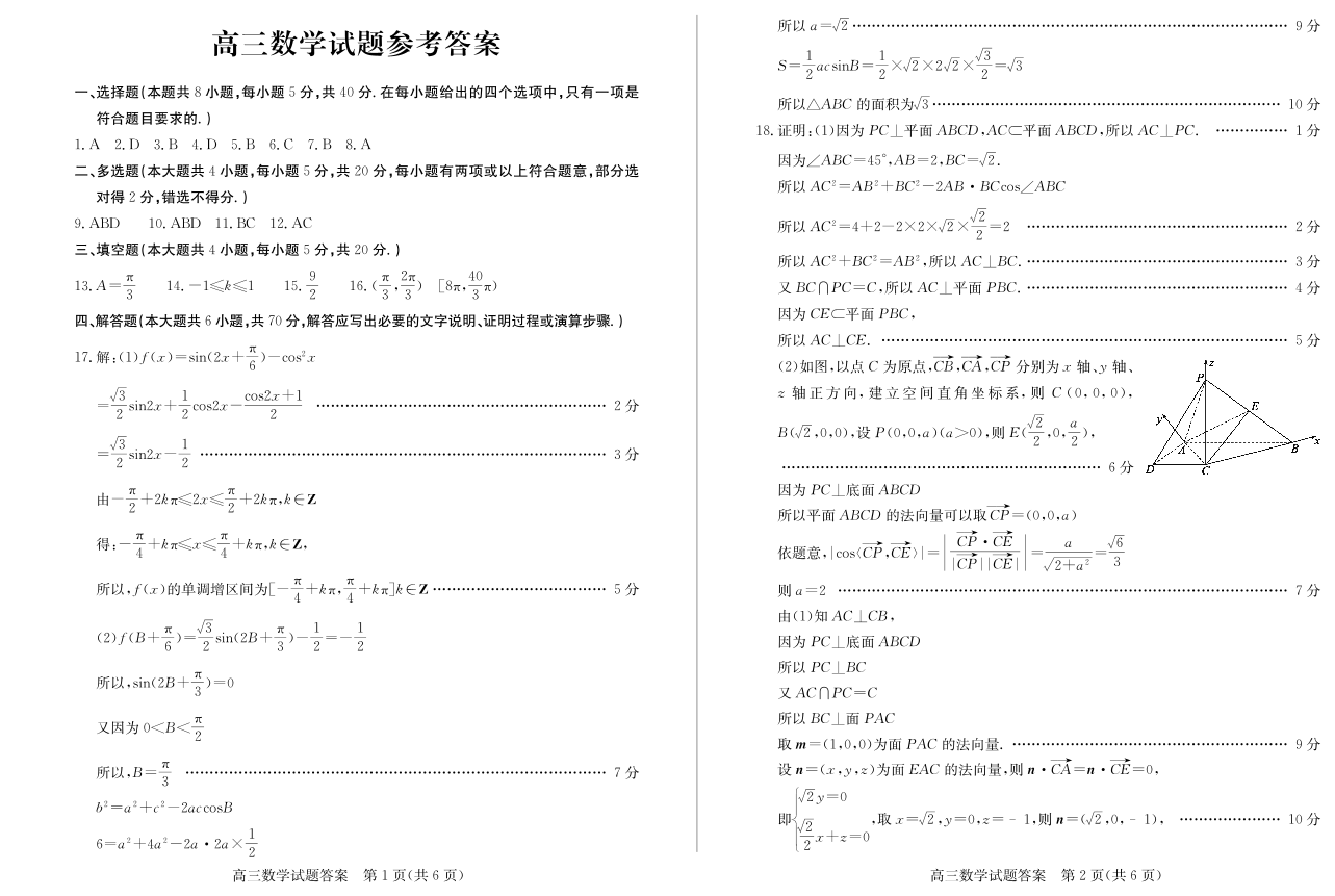 高三数学答案--山东德州2023届高三线上教学自测自评卷