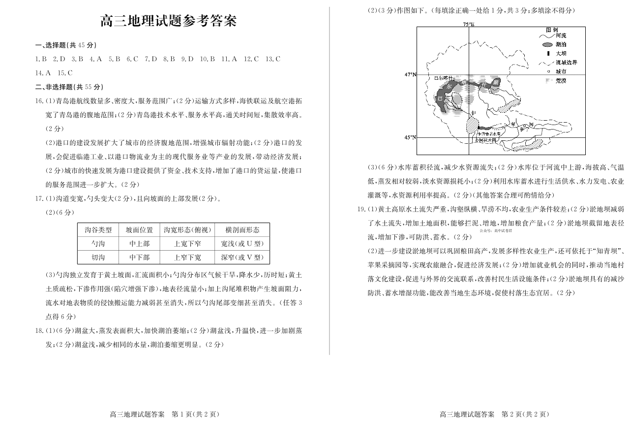 高三地理答案--山东德州2023届高三线上教学自测自评卷