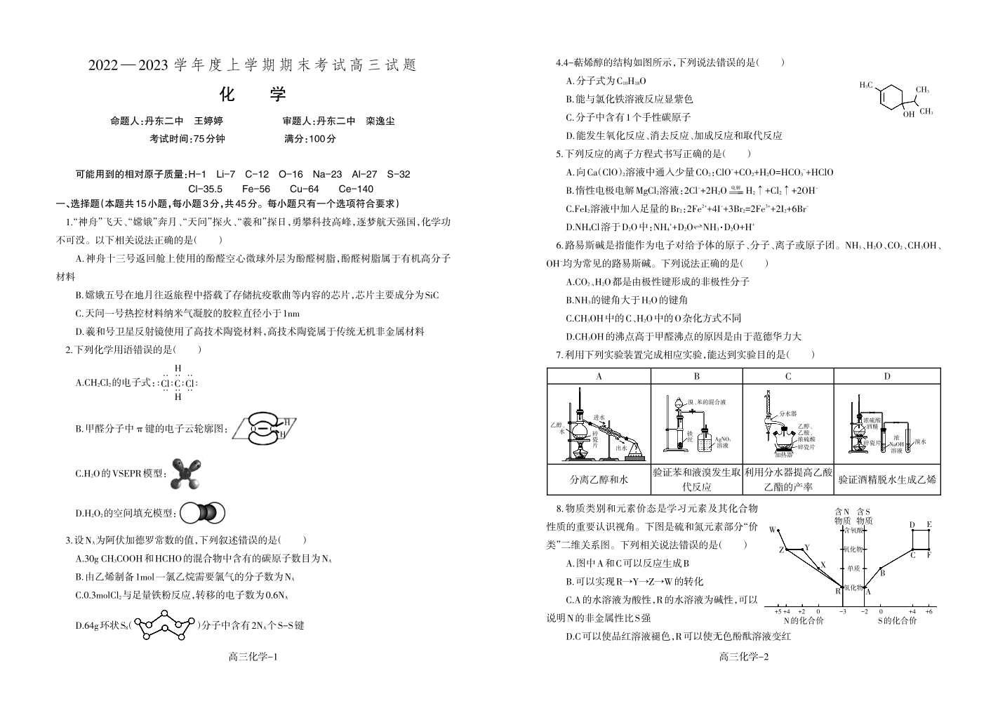 高三化学--辽宁省协作校2023高三上学期期末考试