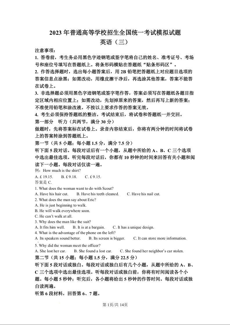 高三英语+答案--辽宁省名校联盟2023届高考模拟调研卷(三)