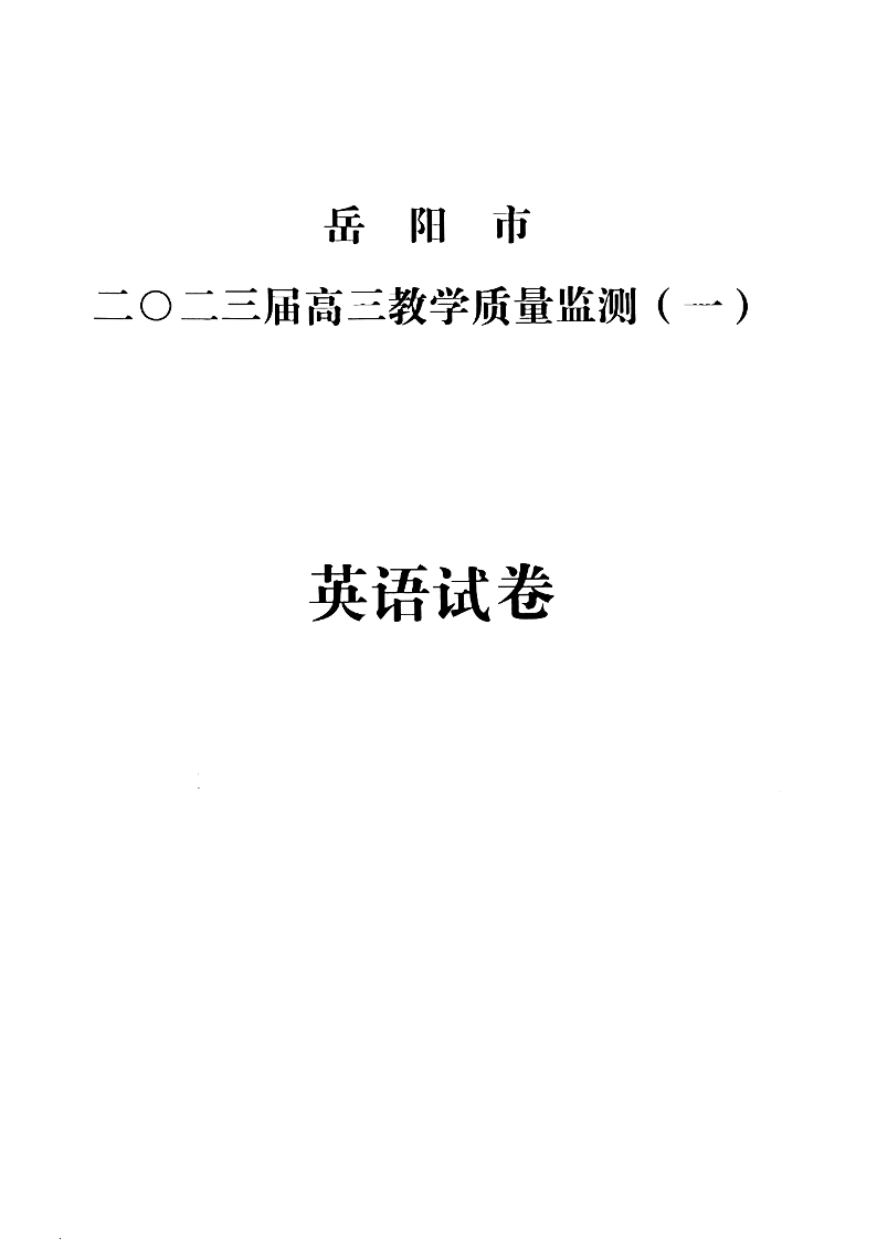 高三英语+答案--湖南省岳阳市2023届高三教学质量监测(一)