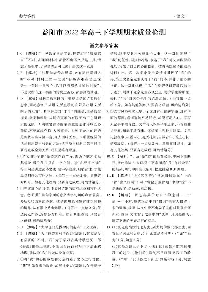 高三语文答案--湖南省益阳市2022-2023学年高三上学期期末质量检测