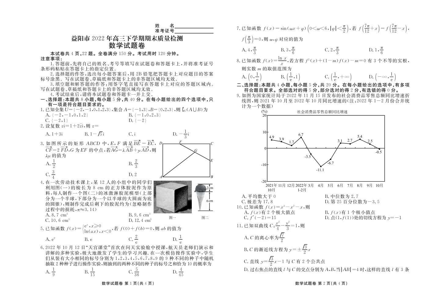高三数学--湖南省益阳市2022-2023学年高三上学期期末质量检测