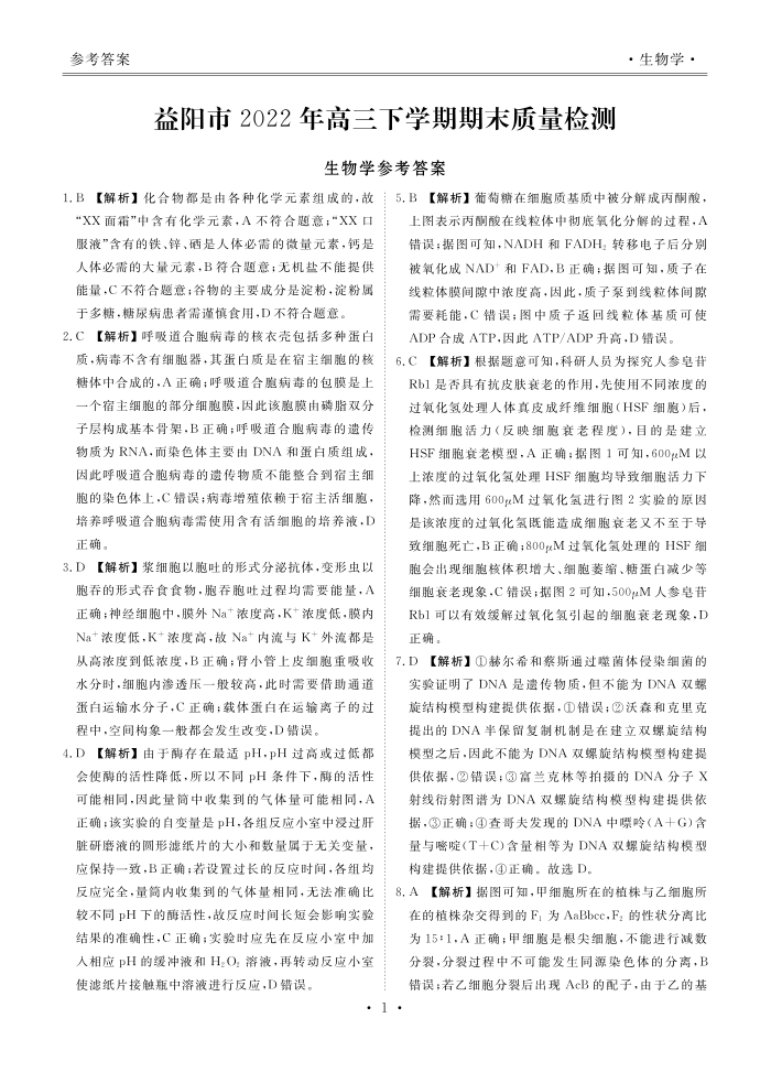 高三生物答案--湖南省益阳市2022-2023学年高三上学期期末质量检测